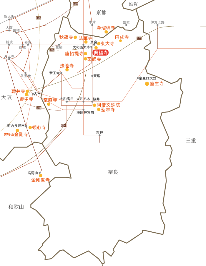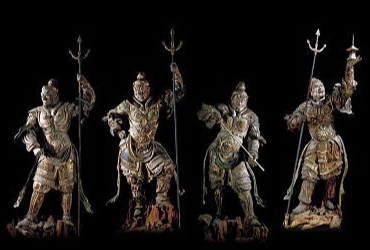 八角形のお堂の中に、すっぽりと不空羂索観音菩薩坐像、四天王立像、法相六祖坐像が納まり